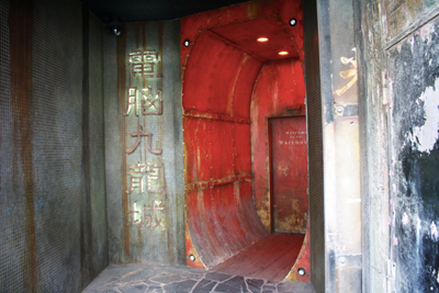 歓迎光臨という怪しい文字が描かれた重厚な自動ドア。それを抜けると、今度は「電脳九龍城」という文字が目に飛び込んでくる。いきなり建物の雰囲気に飲まれてしまいそう。