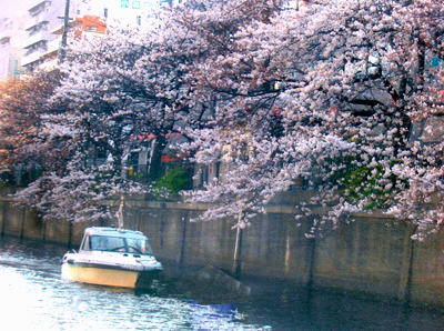 大岡川の桜と教習ボート