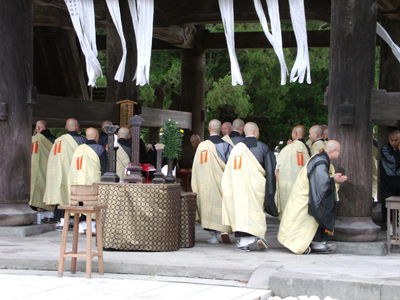 修行中のお坊さんは墨染の僧衣に草履で列をつくって入堂