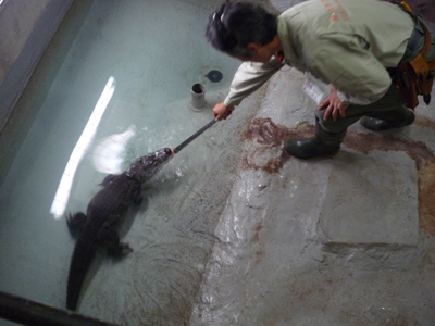 この日は、いつもなら閉園している時間にワニやペンギンのエサやりも。