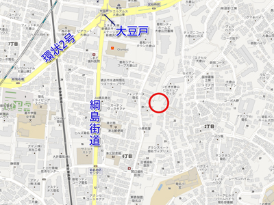 すると、大豆戸の交差点から直線距離で約300m位のところに、それらしい場所を発見。
