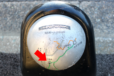環状2号から側道に入り、地図を片手に道を歩いて行くと、道路脇に表示板のようなものを発見。