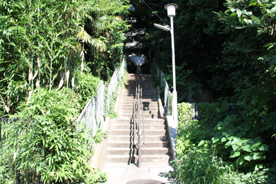 鳥居を潜って中へ入っていくと階段がある。