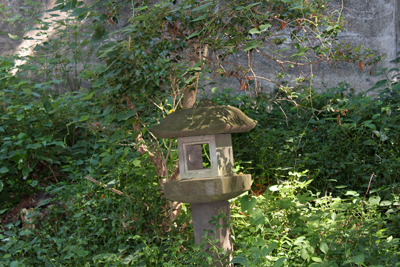 とても古そうな水鉢や捨てられたように置かれている石灯籠