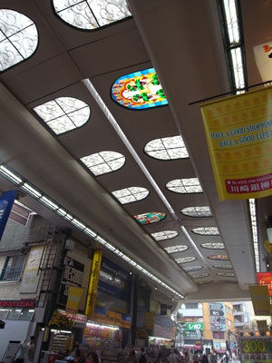 開閉式のアーケードにはステンドグラスが