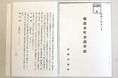 1939(昭和14)年3月発行の「横濱市町名沿革誌」。左側が記載されているページ