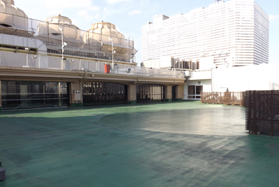 屋上の面積は、1200㎡。オリンピック用の競泳プール(25×50m)よりやや狭い。フロアの半分が2階建ての駐車場で、もう半分が屋外広場になっている。決して広いとはいえないこの場所に、はたして遊園地があったのだろうか。
