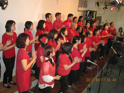 全身で力強く歌う(港南シオンキリスト教会HPより)