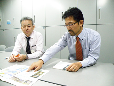 お話を伺ったのは、国土交通省関東地方整備局京浜河川事務所海岸課の、伊藤さんと荒金さん。荒金さんは、実際に「沖ノ鳥島」へ行ったことがあるそうだ。