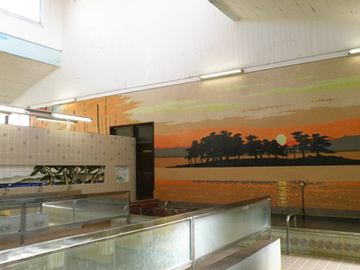 内湯に描かれているタイル絵は、「宍道湖の日の出」