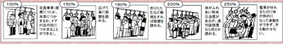 混雑率180%は、 無理をしないと新聞が読めない程度。150%では新聞が普通に読める程度だ。