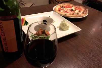 そして、「前菜4種盛り合せ」と、ワンコインピッツァ(500円)2種類を頼むことにした。