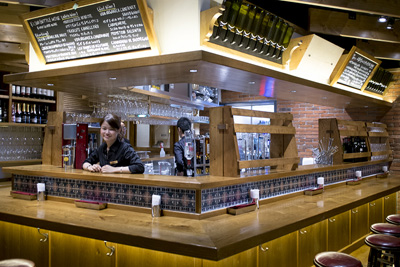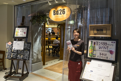 B d 26は、イタリアの居酒屋「バール」をイメージしたお店。ワインを気軽に楽しめるよう、450円のグラスワインや2500円のボトルワインがある。