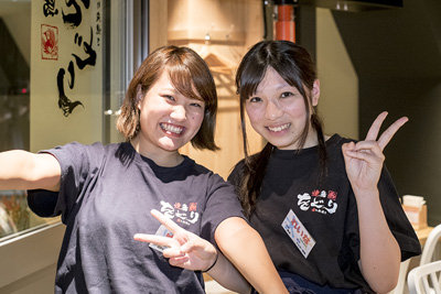 「プリンもオススメです」とスタッフのゆきちゃん(左)、れいなちゃん