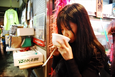 先頭から3番を陣取り、「魚はもう市場でしか買えないわぁ」という常連マダムの話を聞きながら、待つこと10分。本当に無料で良いのだろうかと、むしろ気が引けるくらいのボリュームの魚河岸汁の配布がスタート。体の芯から温まってから、市場をぶらつく。これ以上ない、完璧な流れ。