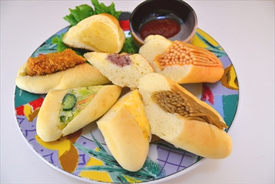 そんな同店の看板メニューは、小ぶりのコッペパンに挟んだ調理パンの数々なのだとか。人気商品は「生野菜(80円/右上」」と「たまご(80円/右中)」。ほかにもいくつか選んでみた。