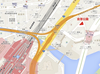 金港公園は、神奈川区金港町、ポートサイド地区のなかにある三角形の小さな公園である。