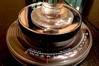 空になったグラスの重さを量ると420グラム。実食前の重さからグラスの重さを引くと、内容量は360グラムということになる。