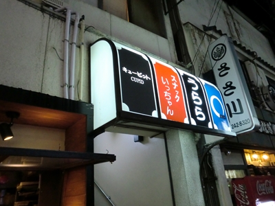 その先、柳通りと交差したところにお目当ての場所があった。飲み屋ビルの2階にある「スナック いっちゃん」がそれ。