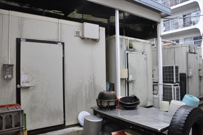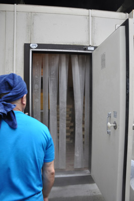 店の裏手に並ぶ大型冷凍庫