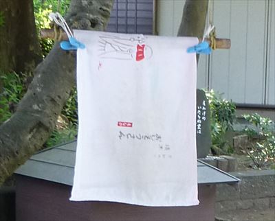 吊るしてある手ぬぐいに「おじぞうさんもなか」の文字が!
