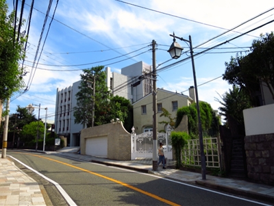 ほぼ同じアングルの現在。緩やかな坂は「ビヤ坂」と呼ばれ往時を偲ばせる