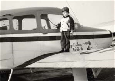 引き取られる前の飛行機。主翼の上の男の子は以前の所有者の息子さん(写真提供:インターネット航空雑誌「ヒコーキ雲」)