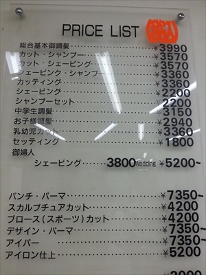 昔のメニューに「総合基本御調髪(カット、シャンプー、シェービング等のコース)」の文字