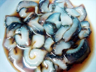 現在では茹でて下ごしらえしたものを薄切りにして、コリコリの食感を楽しむ酢の物や和え物でいただくのが日本流の食べ方だが、中国料理では乾燥ナマコを水で戻してプルプルの煮物にするのがほとんど。