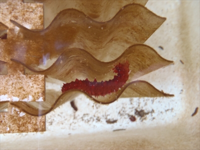 波板に乗る稚ナマコ。表面に培養した珪藻(けいそう)を餌に育つ(提供:神奈川県水産技術センター)