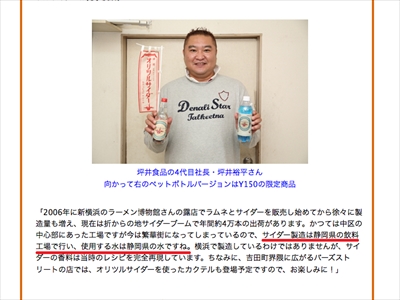 「いつか横浜の水を使って、横浜市内の工場で地サイダーを作る」のが、坪井社長の目標となったそうだ。