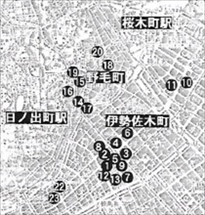 上の図にある映画館名(『シネマシティ ―横浜と映画―』より)