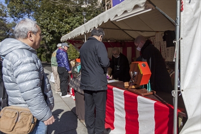 案内や誘導をしていた若いお坊さんに伺うと、福豆販売は1月30日(土)から行っていて、特賞はもうすでに出てしまっているとのこと。来年はぜひという方は早目に行くといいかも?