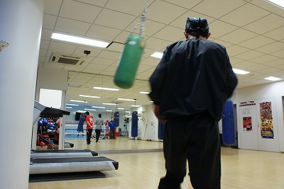 サンドバックの練習風景。カメラでは捉えきれないパンチスピード