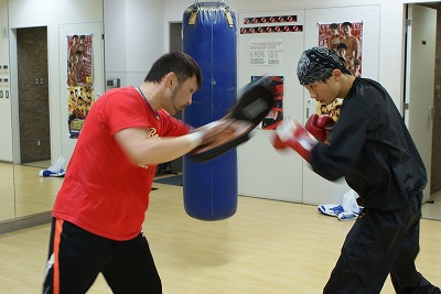 シャドーの練習中。対戦相手が実際にいるかのような雰囲気が伝わる