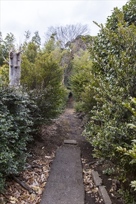 民家の間の細い道を入る。左右を木々や竹に囲まれた土の小路をたどっていくと鳥居が見えた。