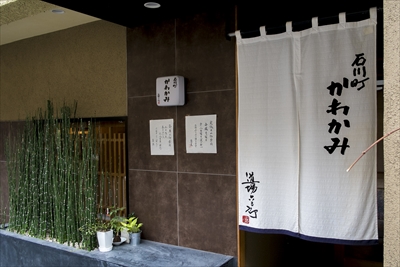 さりげない佇まい。暖簾には「石川町かわかみ」と屋号がある