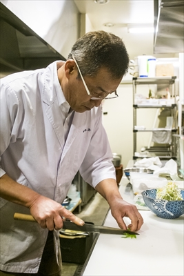 「かわかみ」ご主人の名前は、河上良友(かわかみ・ながとも)さん。高校を卒業してすぐ料理の世界に入った。