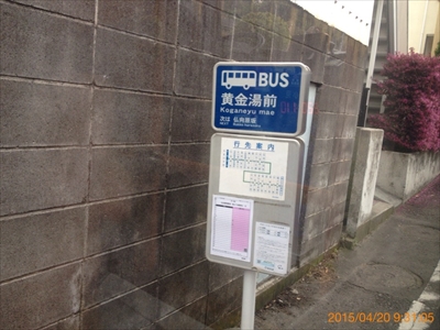 レア区間最初のバス停は、黄金湯という入浴施設の前に設置されていた。