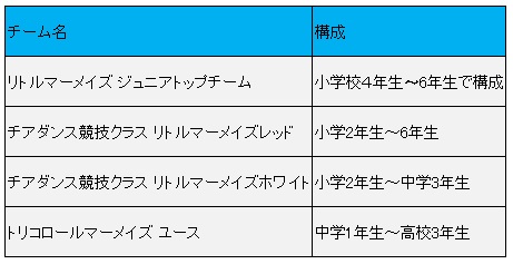 直営クラスは年齢に合わせてだれでも受講可能だが、選抜チームは毎年4月のオーディションで決定されたメンバーが所属する。