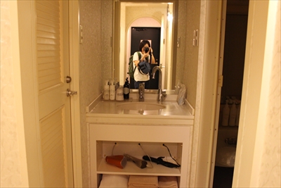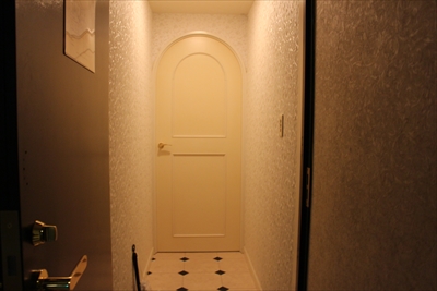 平民から一気に姫へと上り詰められそうな305号室。花柄の壁紙と白と黒タイルの床、薄紫のシフォン布であつらえられた室内は、山崎の女子心をくすぐる。が、「意外と女性の方はこの部屋選ばないんですよ。むしろ中年男性の方が喜びますね」と管理人さん。・・・いや、みんな照れてるだけでしょー女子ー。ほんとはうれしいんだろー? そ、そうですよね?