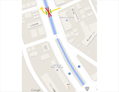 ここは画面向こう側の道路にとっての一方通行路の橋だ