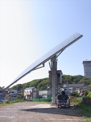 「午前3~4時ごろの日の出間近になると稼動しはじめ、自動的に太陽の方角に向きを合わせます。その後は3~4段階に動いて太陽の入射角度と直角になるように角度を調整します。そして午後8時に止まり、元の位置に戻ります」