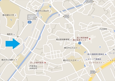 国道1号線を原宿の交差点で曲がり、深谷の交差点で左折、さらにドリームランド前を左折する。