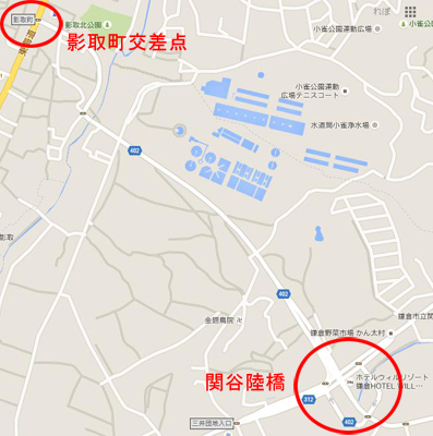 県道402号(阿久和鎌倉)が県道312号(田谷藤沢)と交差する場所にある“関谷インター”と呼ばれている陸橋は「関谷陸橋(せきやりっきょう)」が正式名称だった。