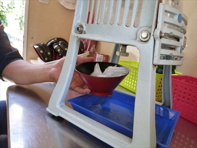 手動のかき氷器から、氷の削れる心地良い音が聞こえる
