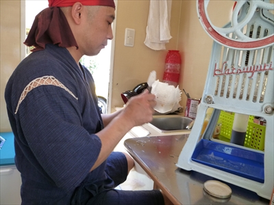 まさにかき氷職人とでも言うべきムダのない動きで氷をセット
