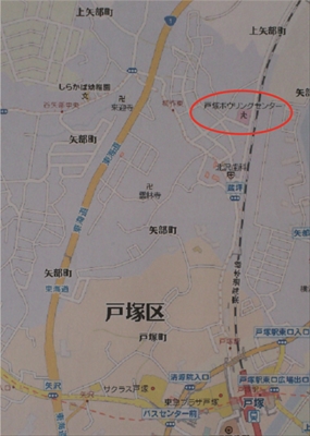 地図中の赤丸のところが戸塚ボウリングセンター