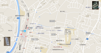 左下隅が大船軒、右上隅が鎌倉ハム富岡商会