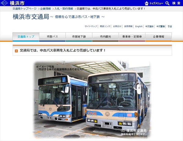 交通局のサイトには入札の案内がある(横浜市交通局ホームページより)
